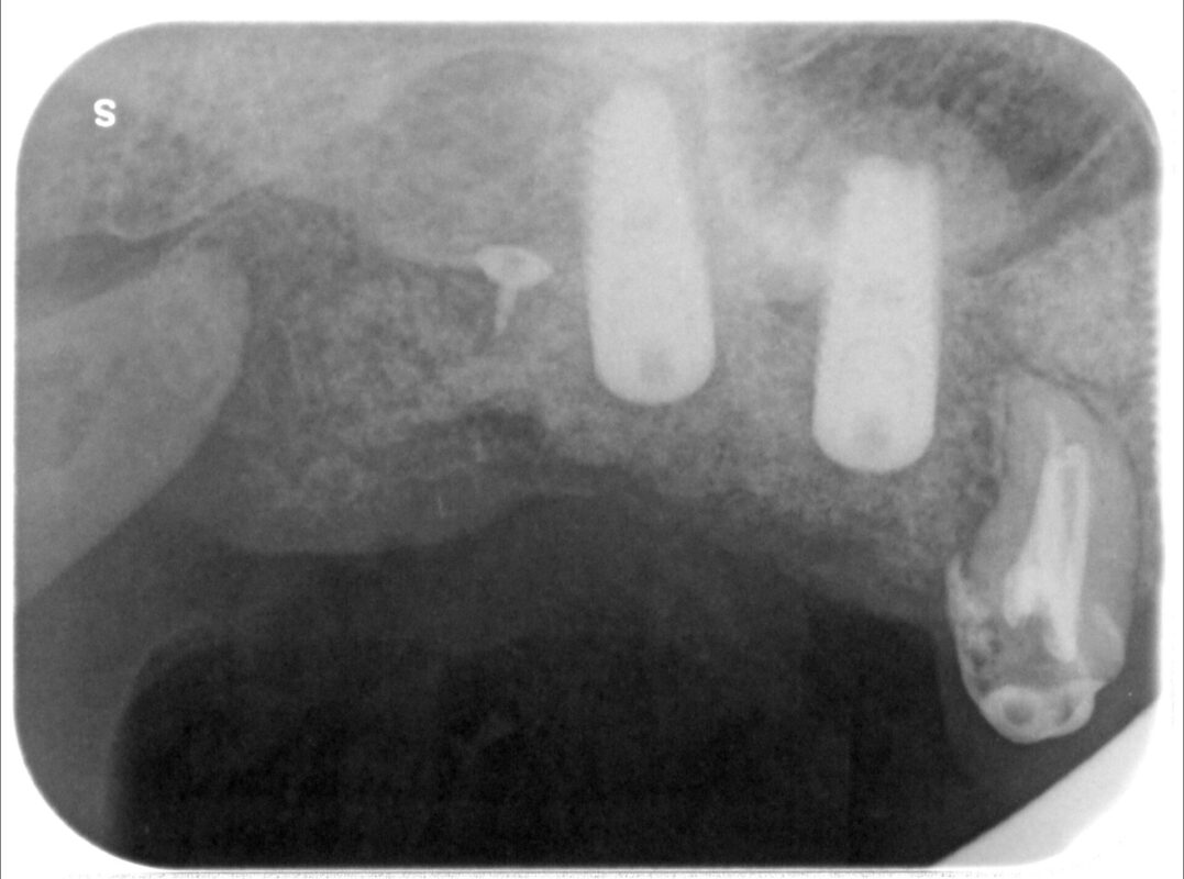 まだ骨の高さ不足のため、今回は上部からの骨移植を行っています。(ソケットリフト)