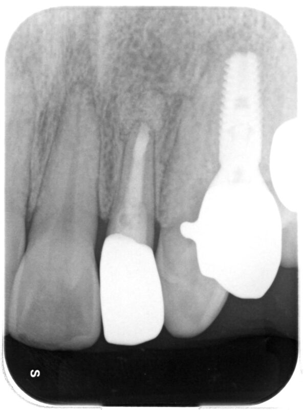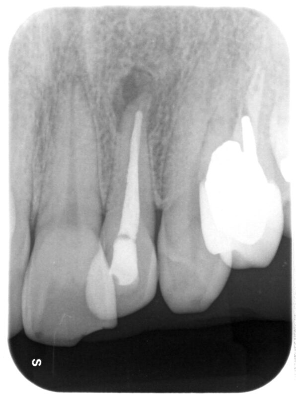 自覚症状はありませんが、サイナストラクト(絶えず歯肉を通して膿が出ています)が存在。